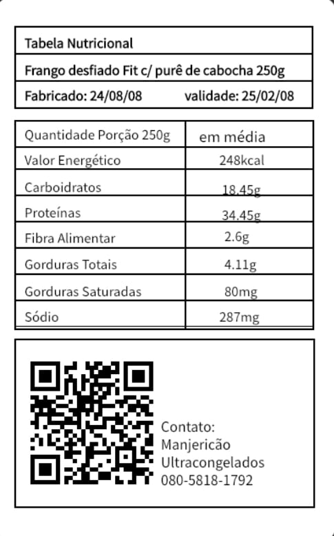 Frango Fit desfiado temperado com legumes acompanhado de um delicioso purê de cabocha